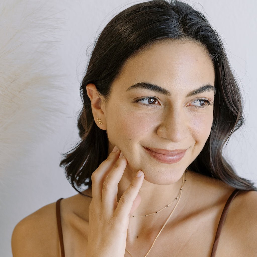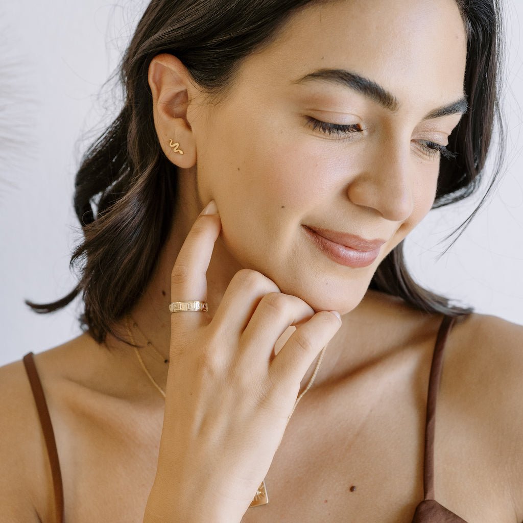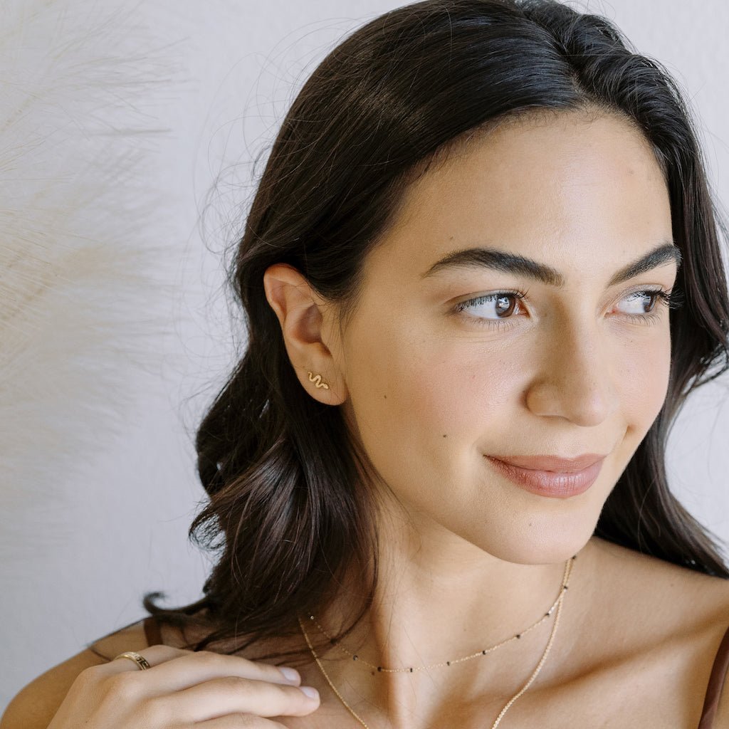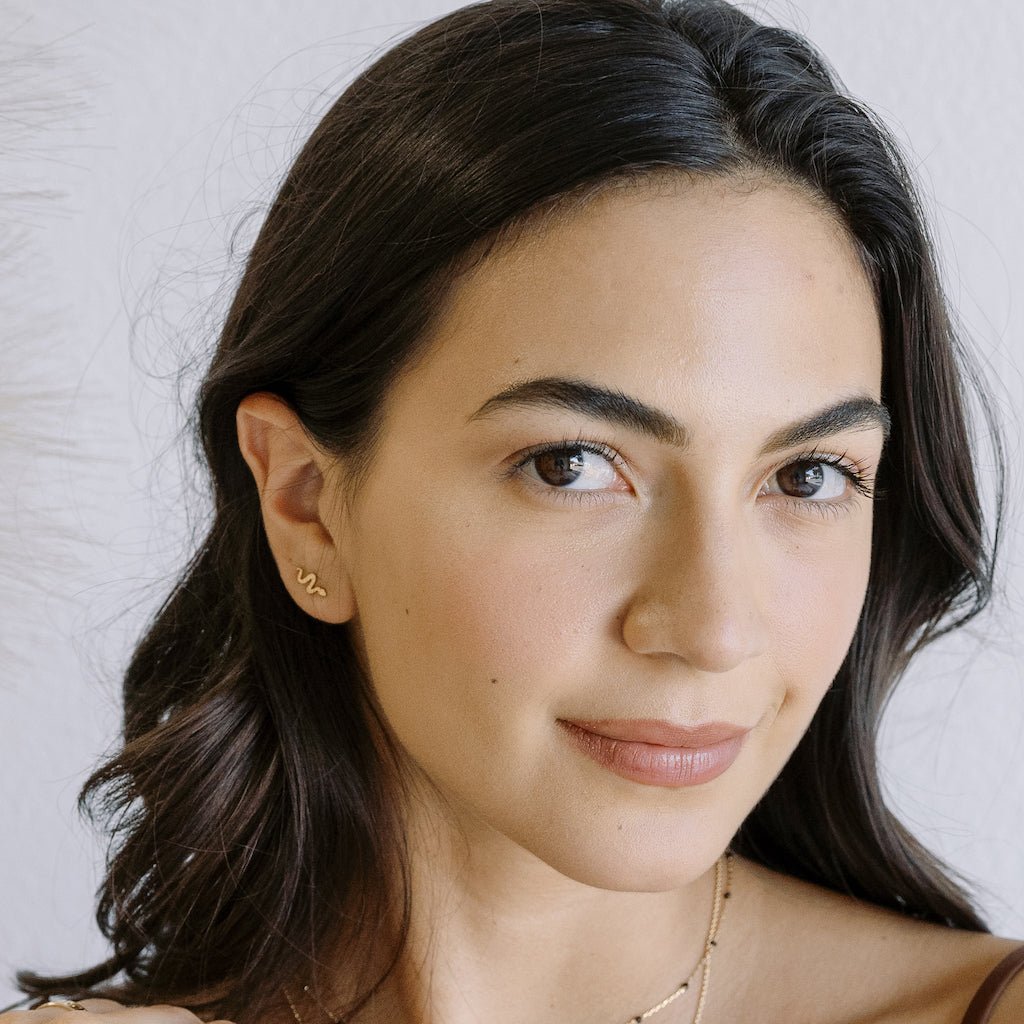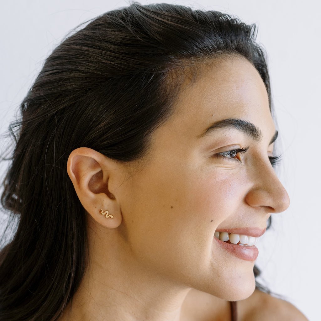 Petite snake studs in a dainty silhouette. Wear 'em solo or playfully ssstacked against your favorite studs & hoops. Studs measure 11mm x 5mm.