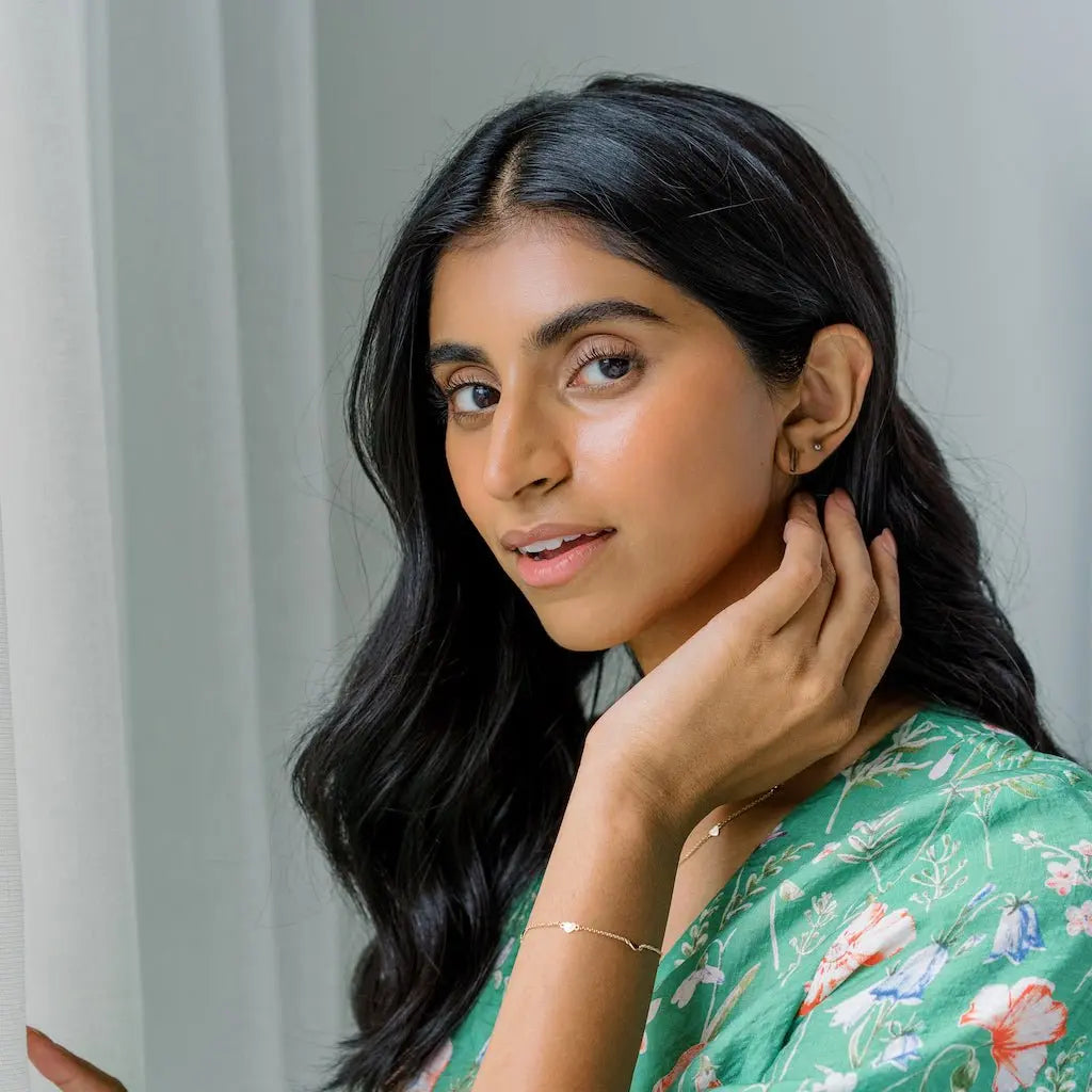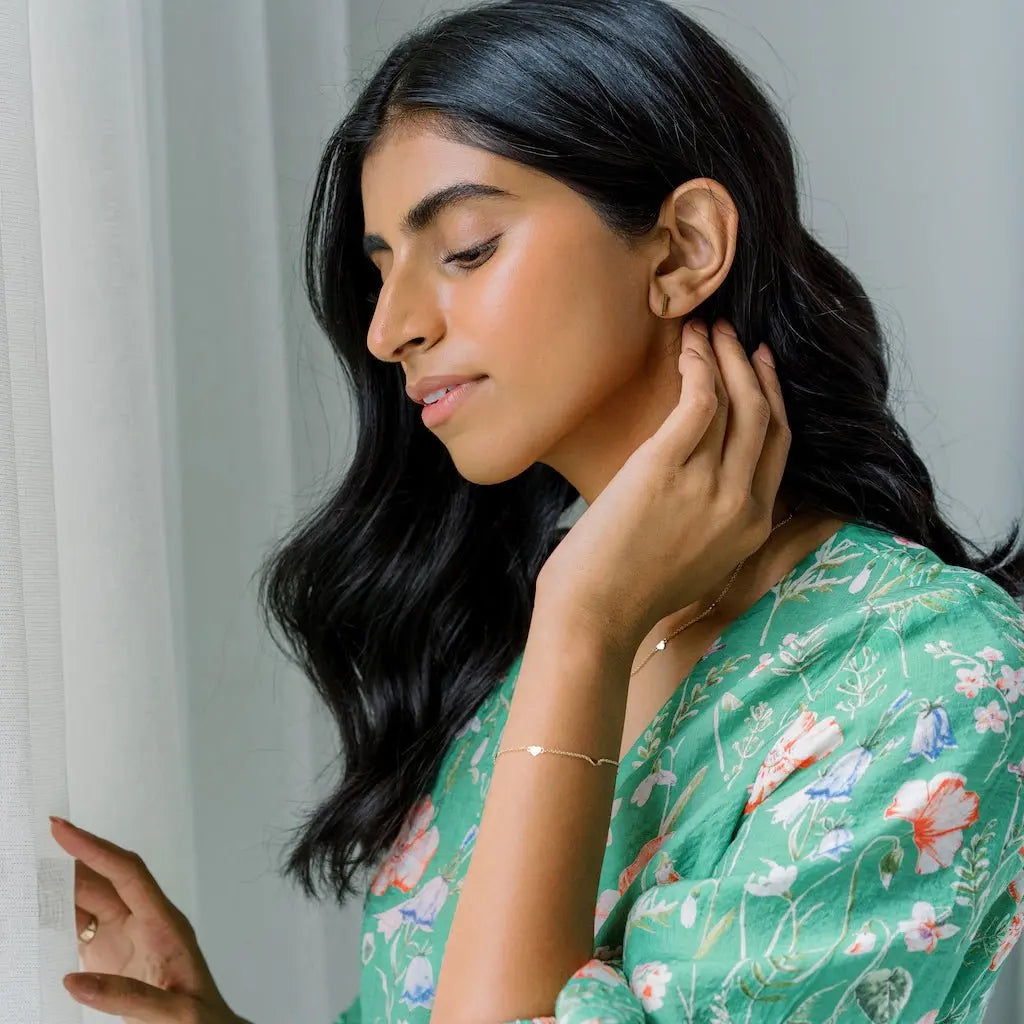 Tiny heart charms perfectly spaced on our classic whisper thin chain. These confetti like pendants catch light in brilliant little flashes with your every move. So lightweight and comfortable to wear, it's easy to add this delicate piece to your everyday style.